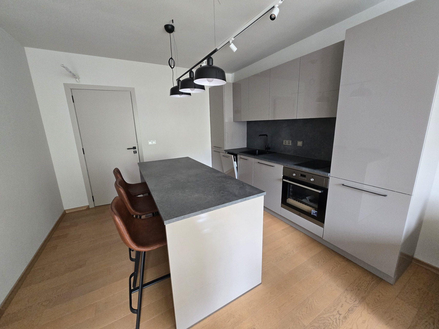 Зона за хранене с остров и бар столове;